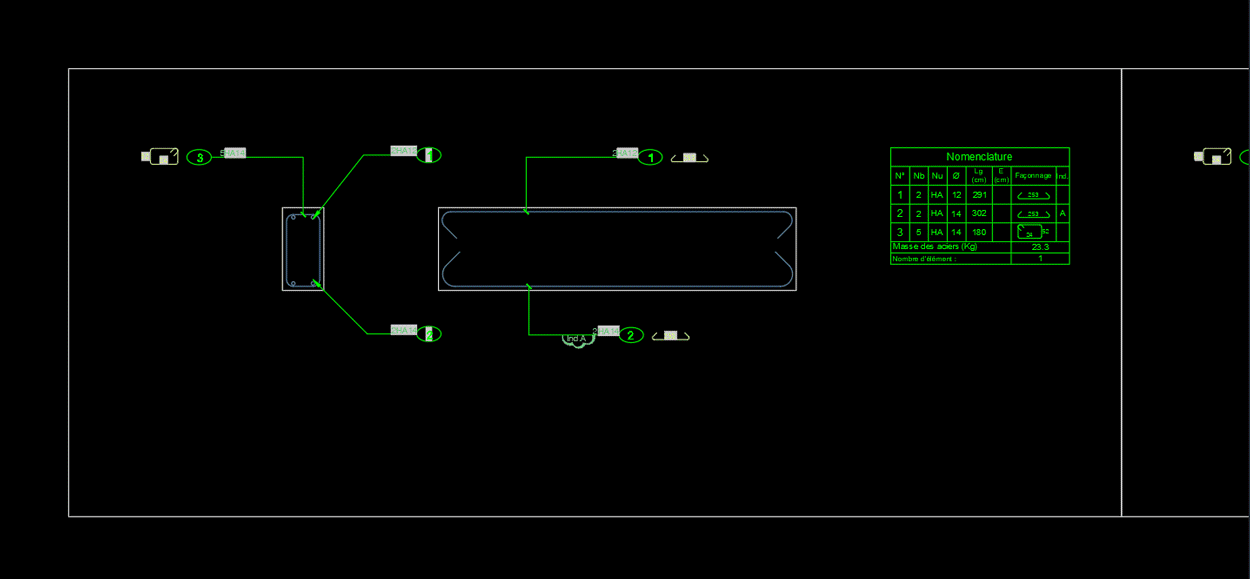 Il est possible de combiner un tableau de nomenclature texte (exporté par un logiciel comme Arche) avec des aciers StormACAD.