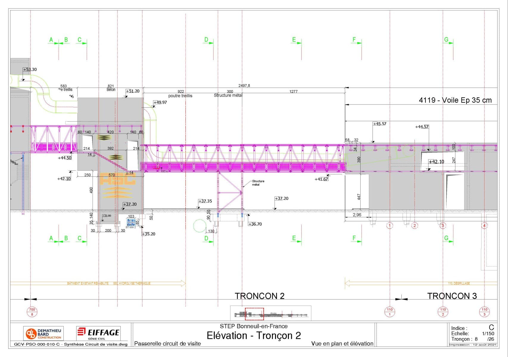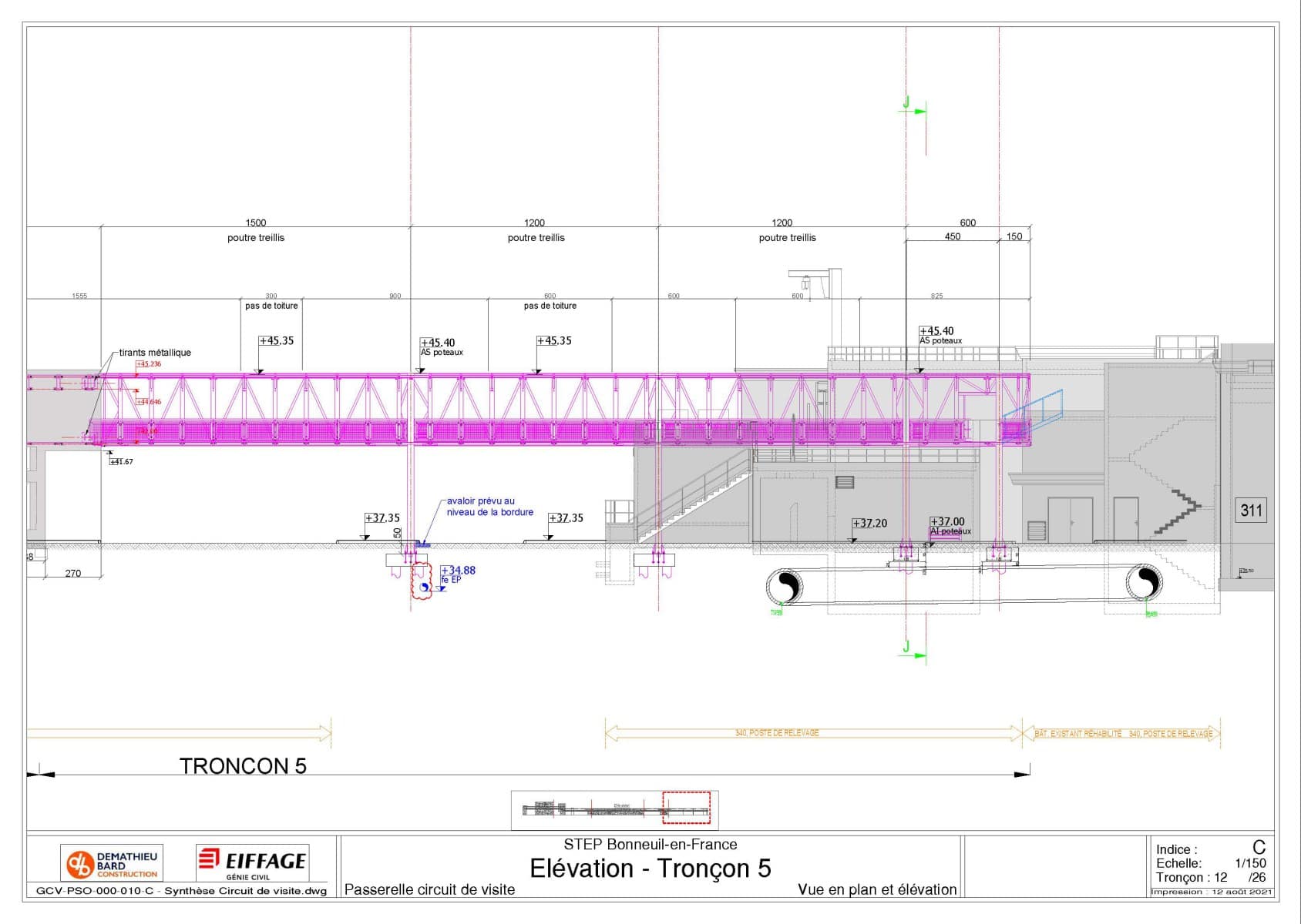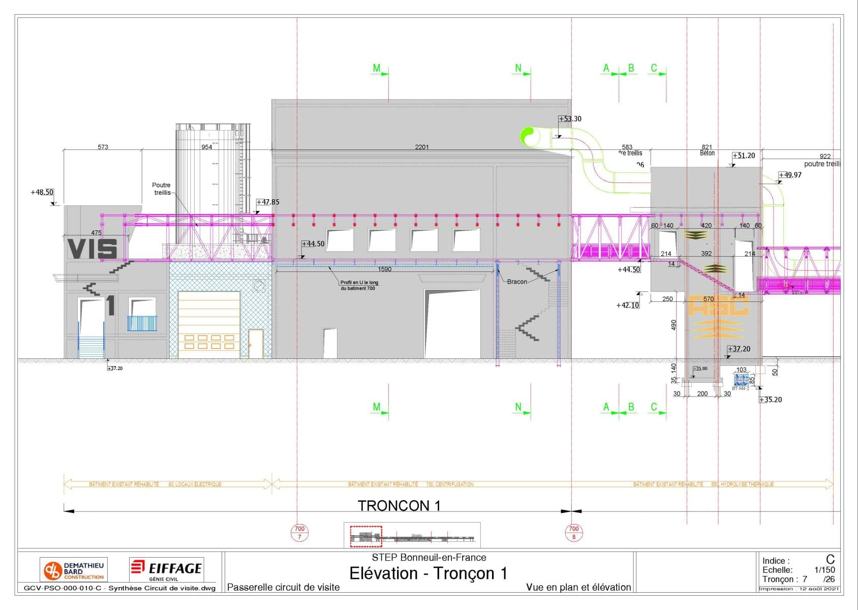 Missionné par l’entreprise Eiffage Génie Civil pour une mission de méthode et synthèse, j’ai pu réaliser de nombreux documents sur ce chantier.