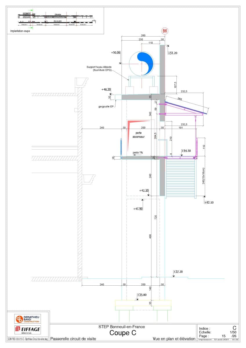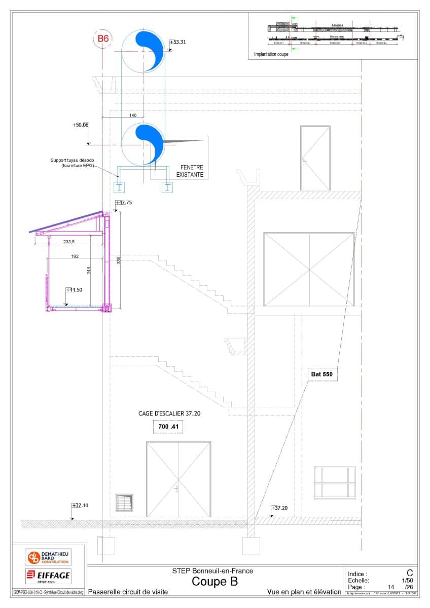 Réalisation d’un plan de synthèse décrivant les travaux de réhabilitation du bâtiment Poste électrique en bâtiment d’accès à la passerelle et à la toiture du futur SAS de récupération des boues.