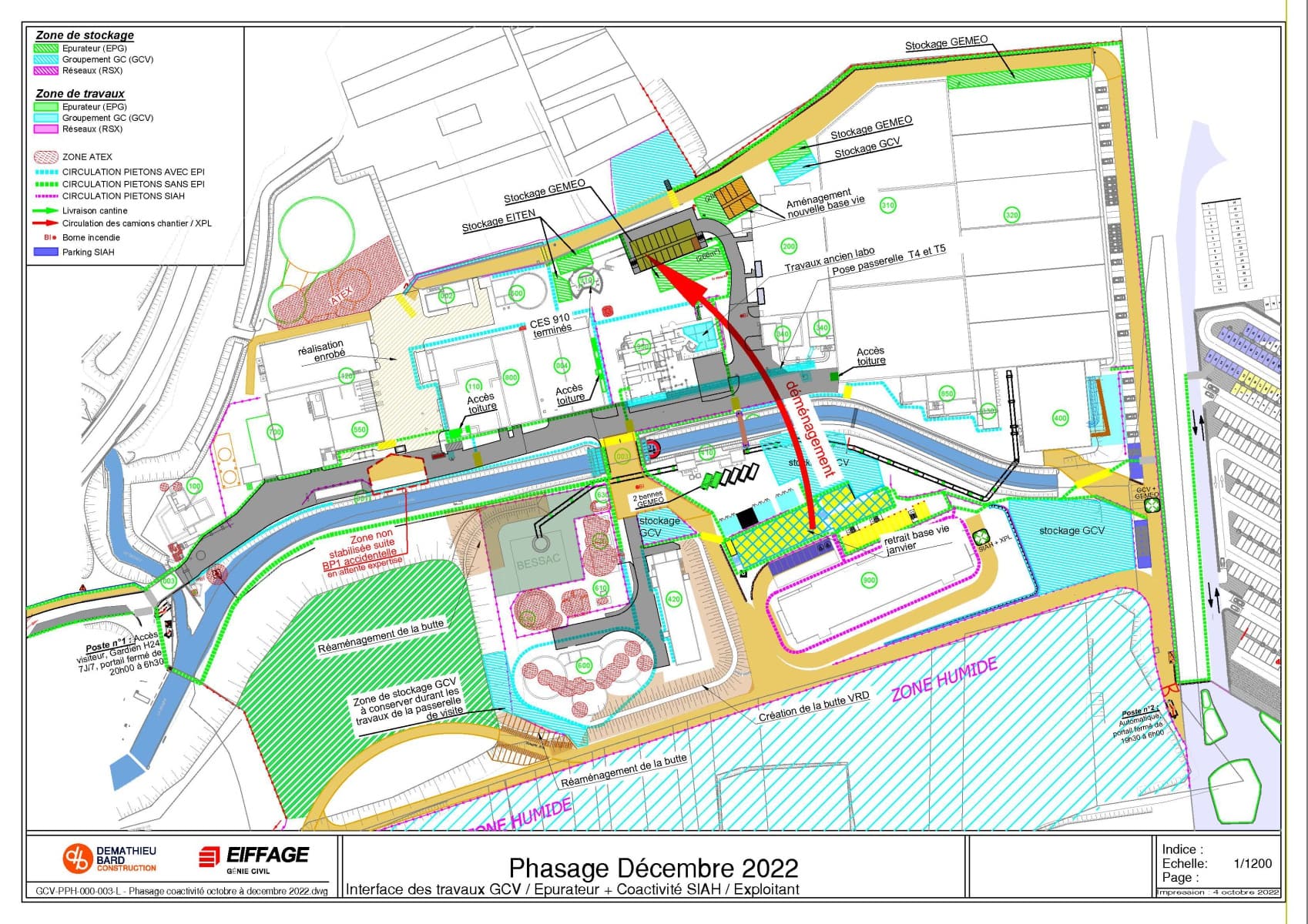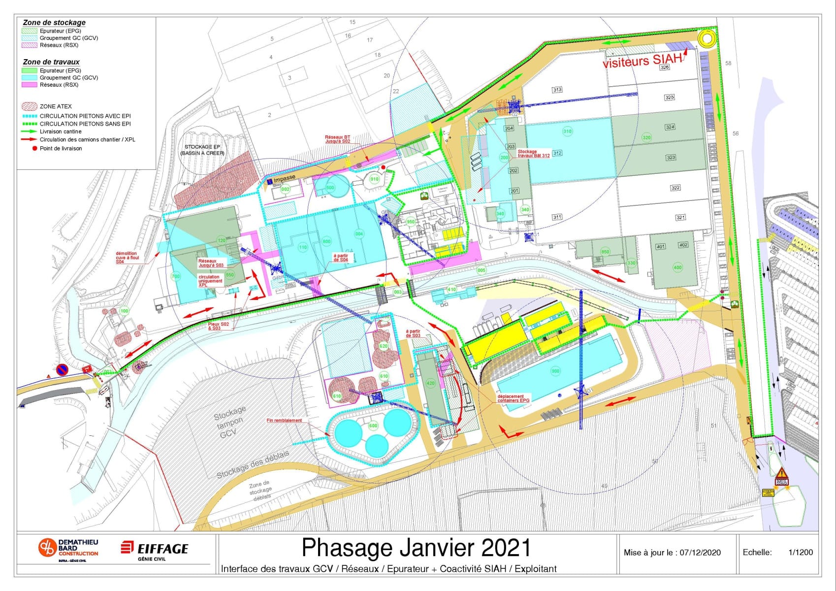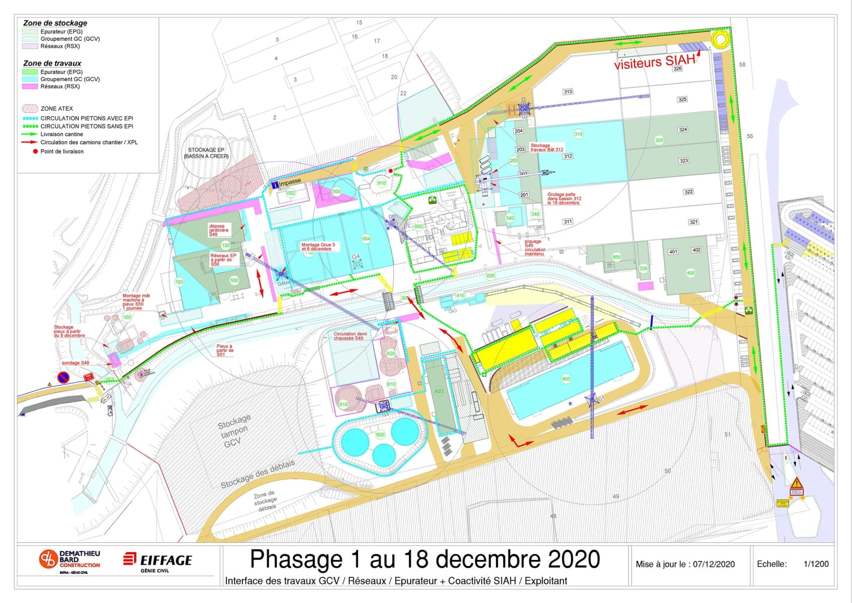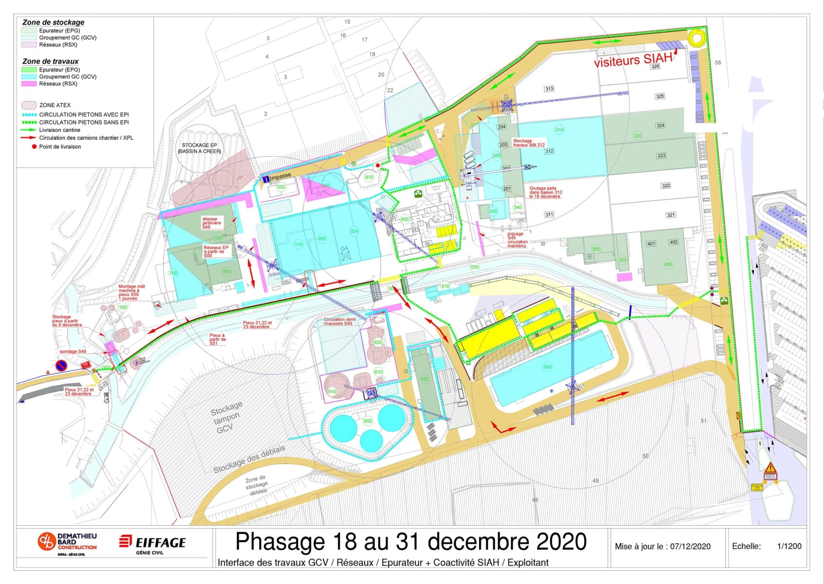 Il définit aussi les différentes circulations pour les véhicules, le cheminement piéton dans les zones de travaux avec EPI et le cheminement dans la station sans EPI.