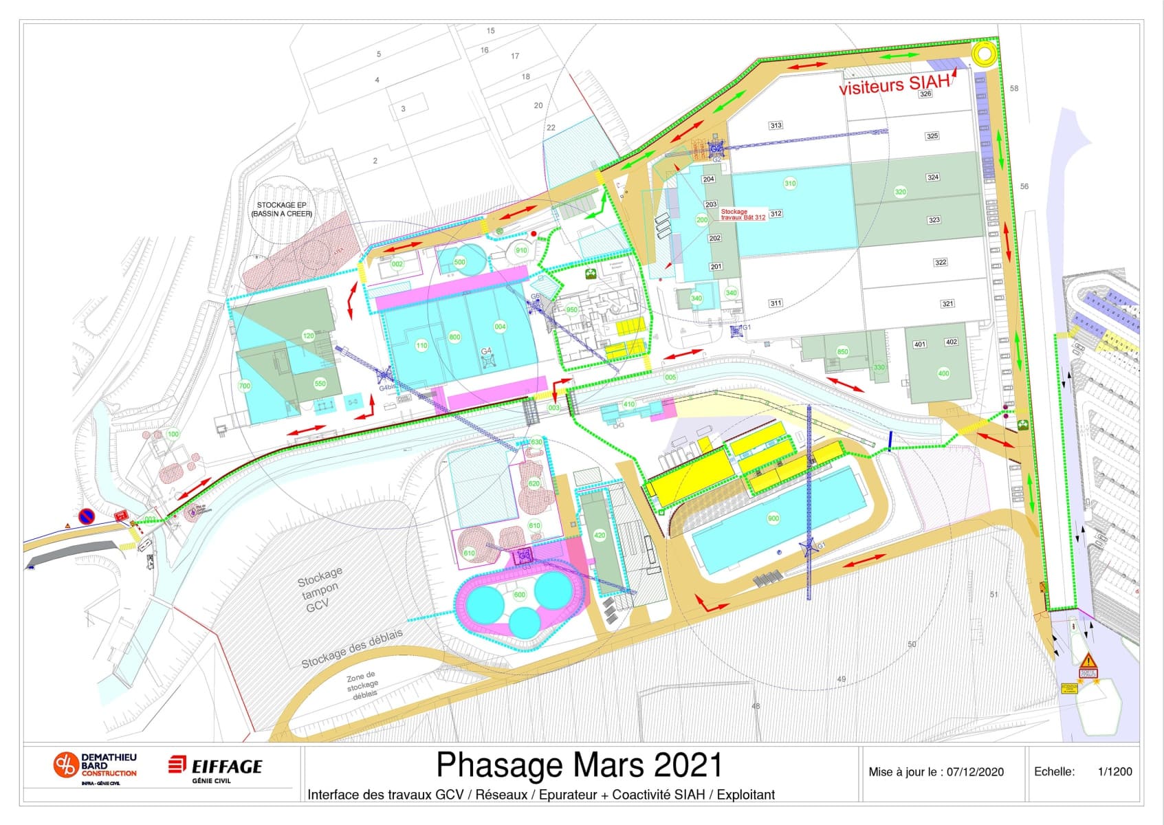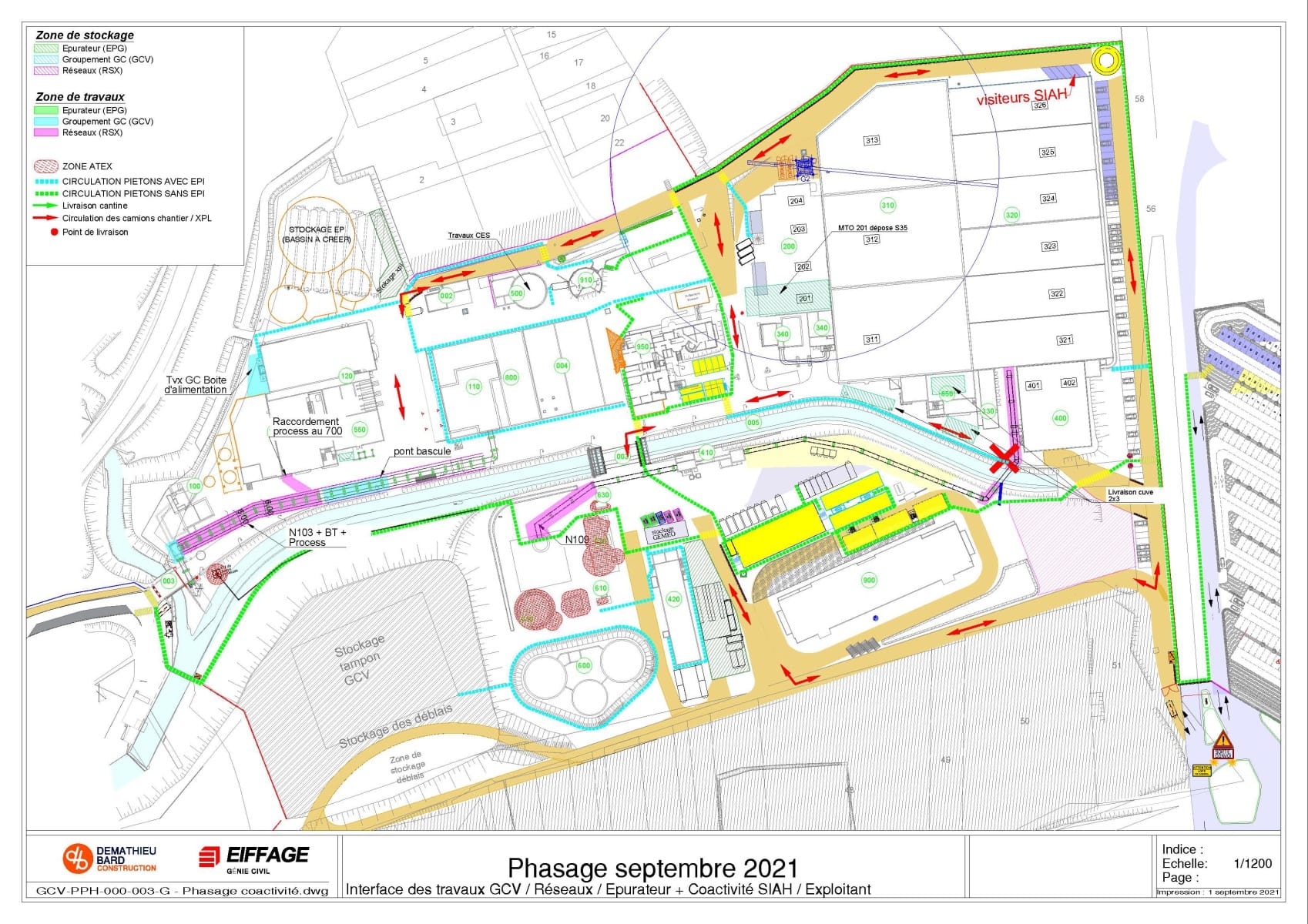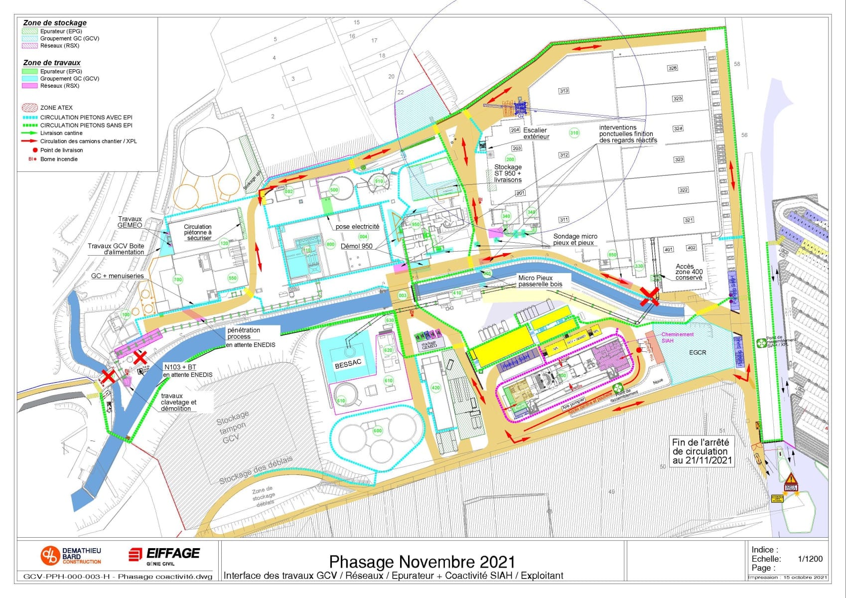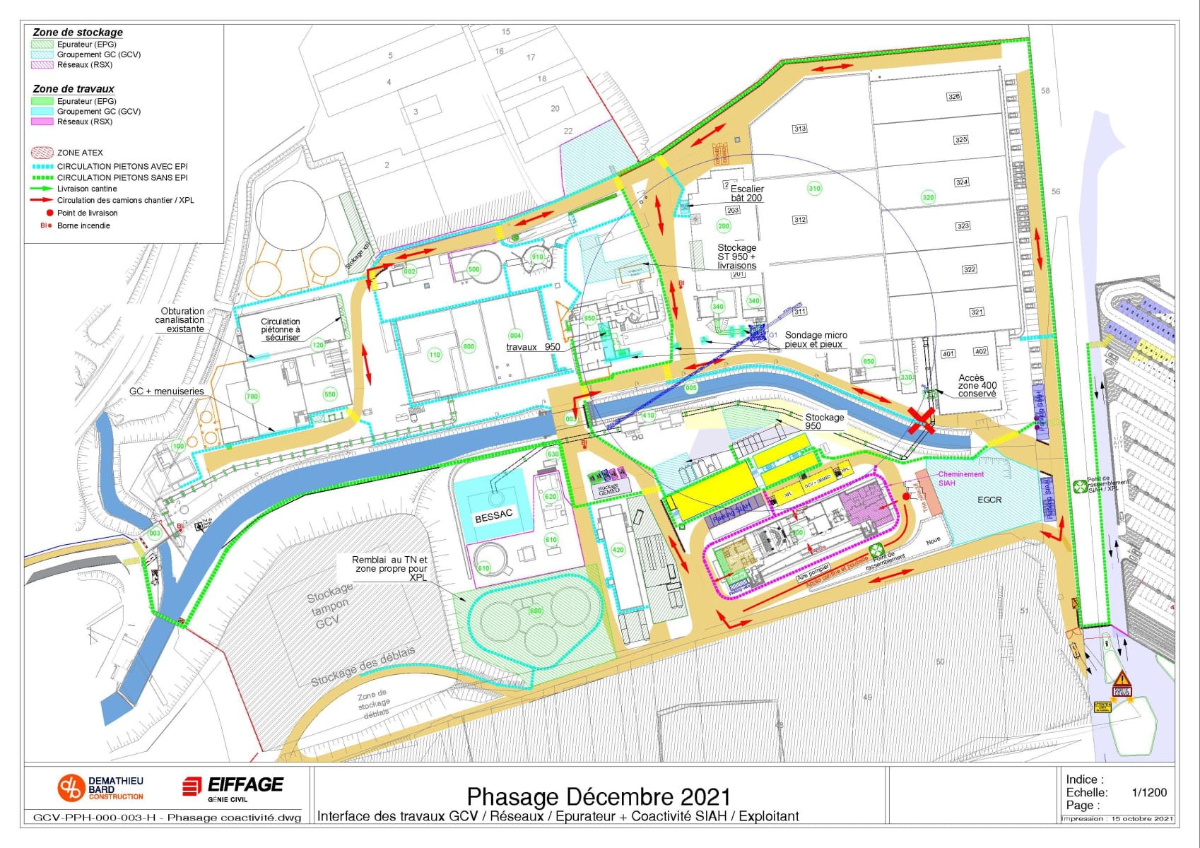 Il définit aussi les différentes circulations pour les véhicules, le cheminement piéton dans les zones de travaux avec EPI et le cheminement dans la station sans EPI.