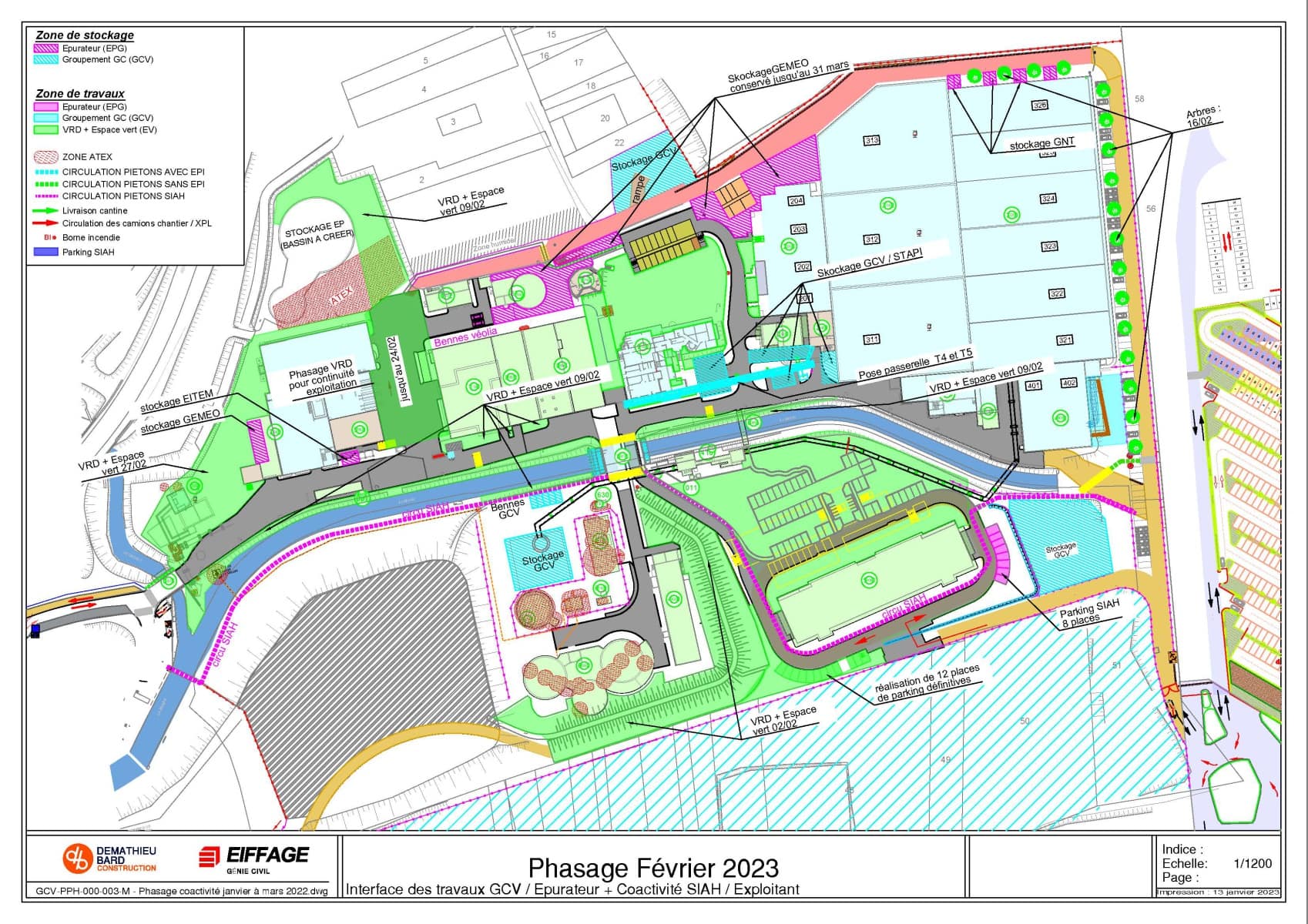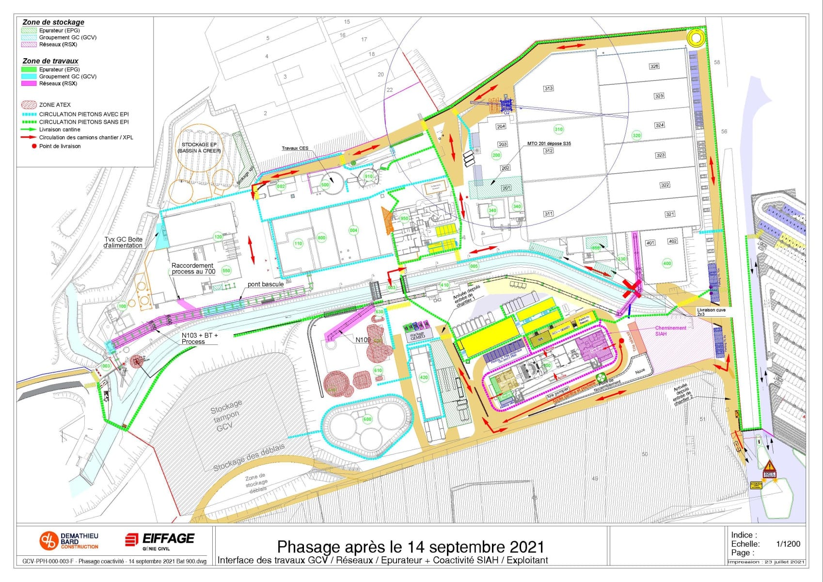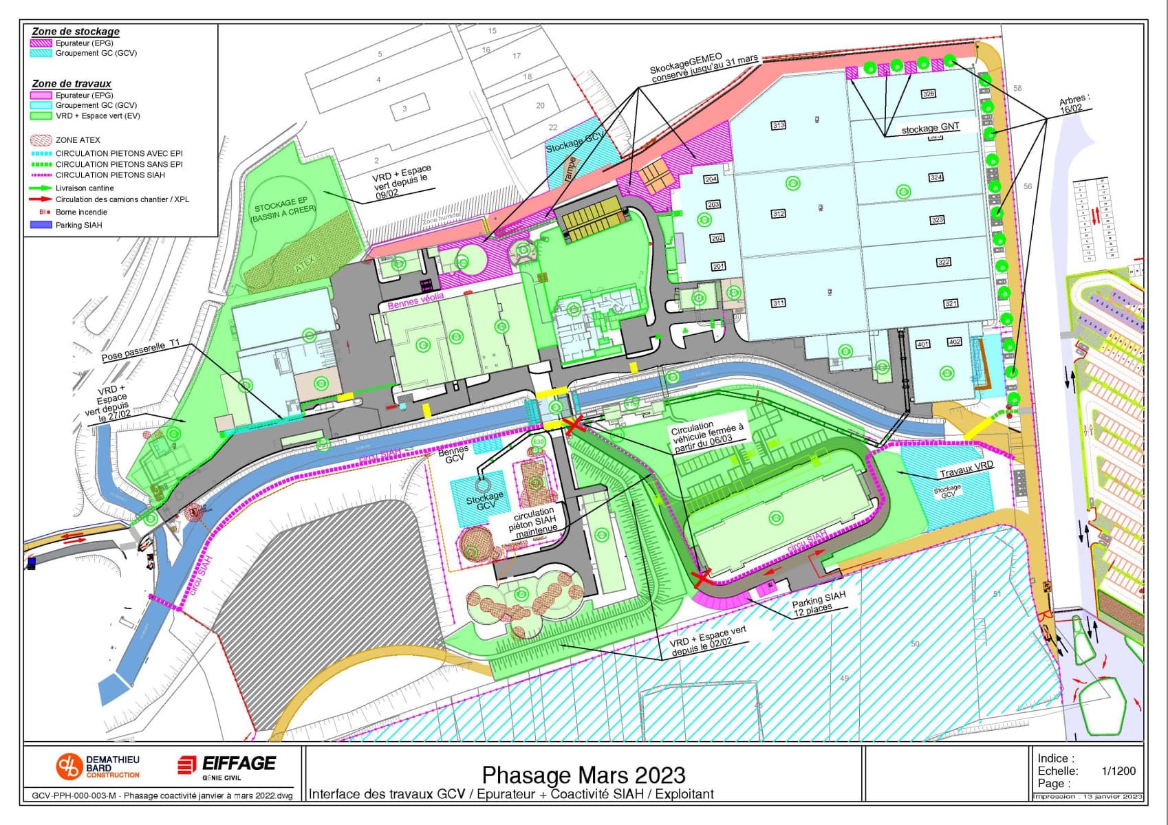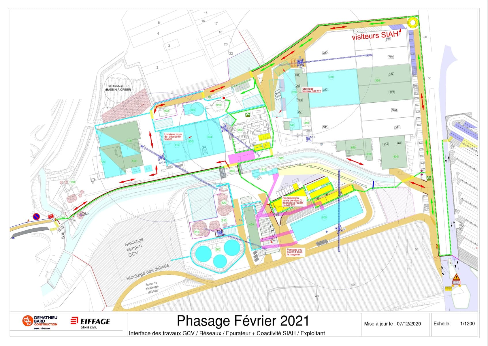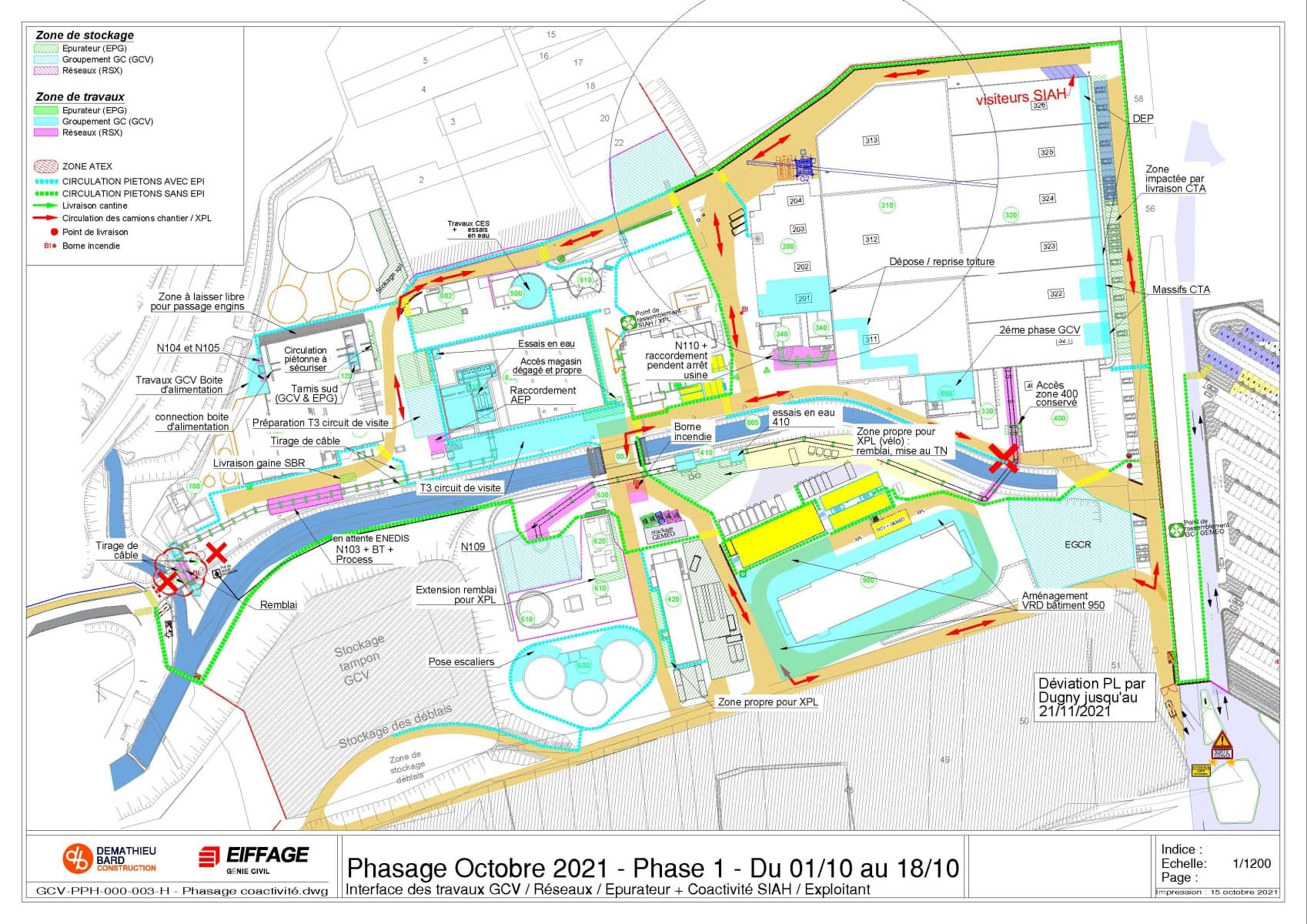 Il définit aussi les différentes circulations pour les véhicules, le cheminement piéton dans les zones de travaux avec EPI et le cheminement dans la station sans EPI.