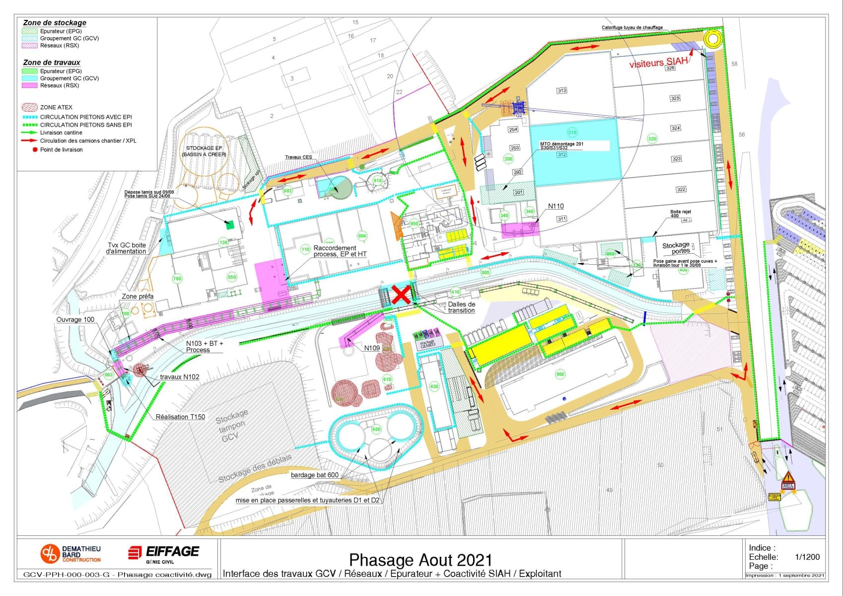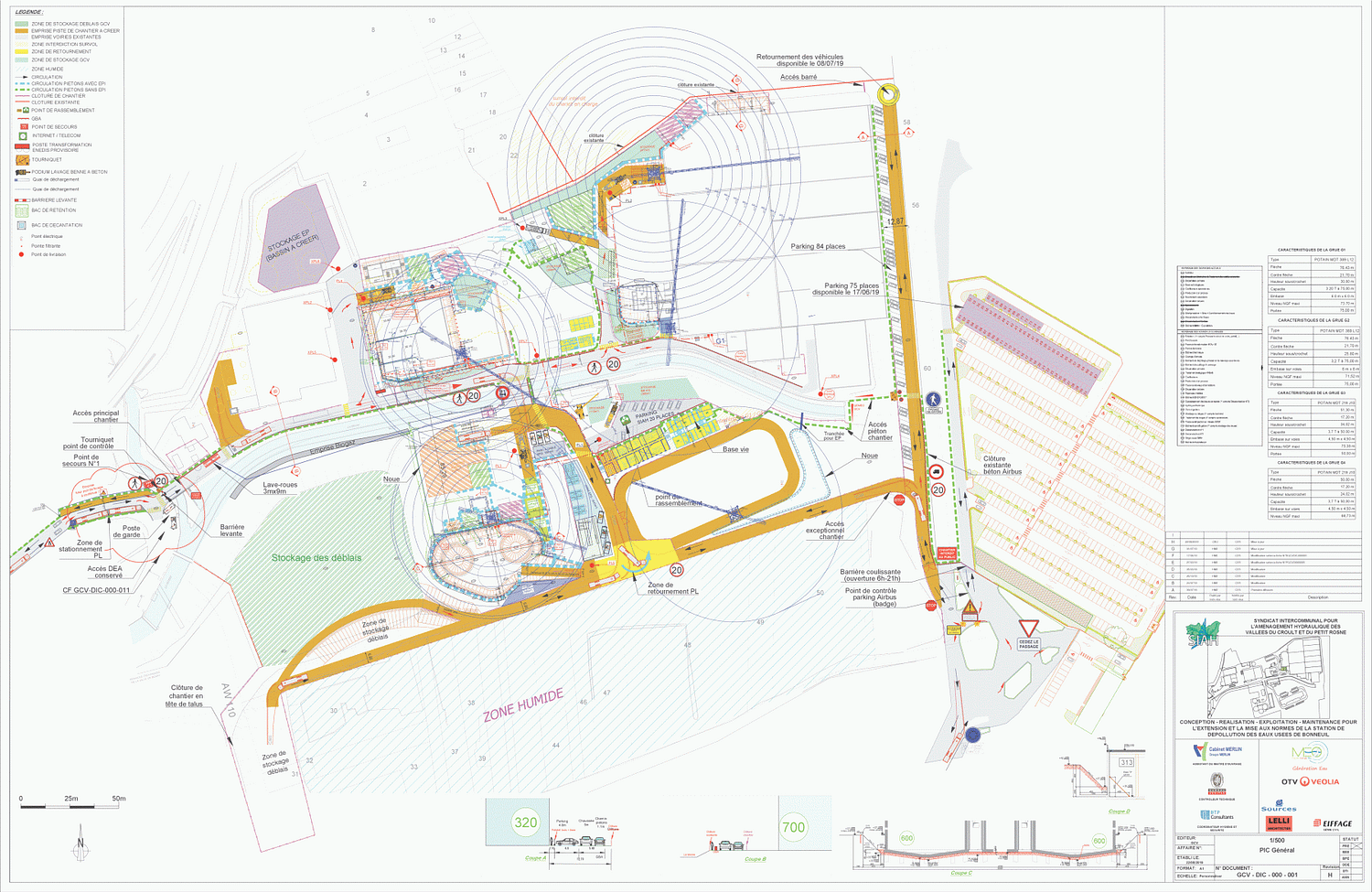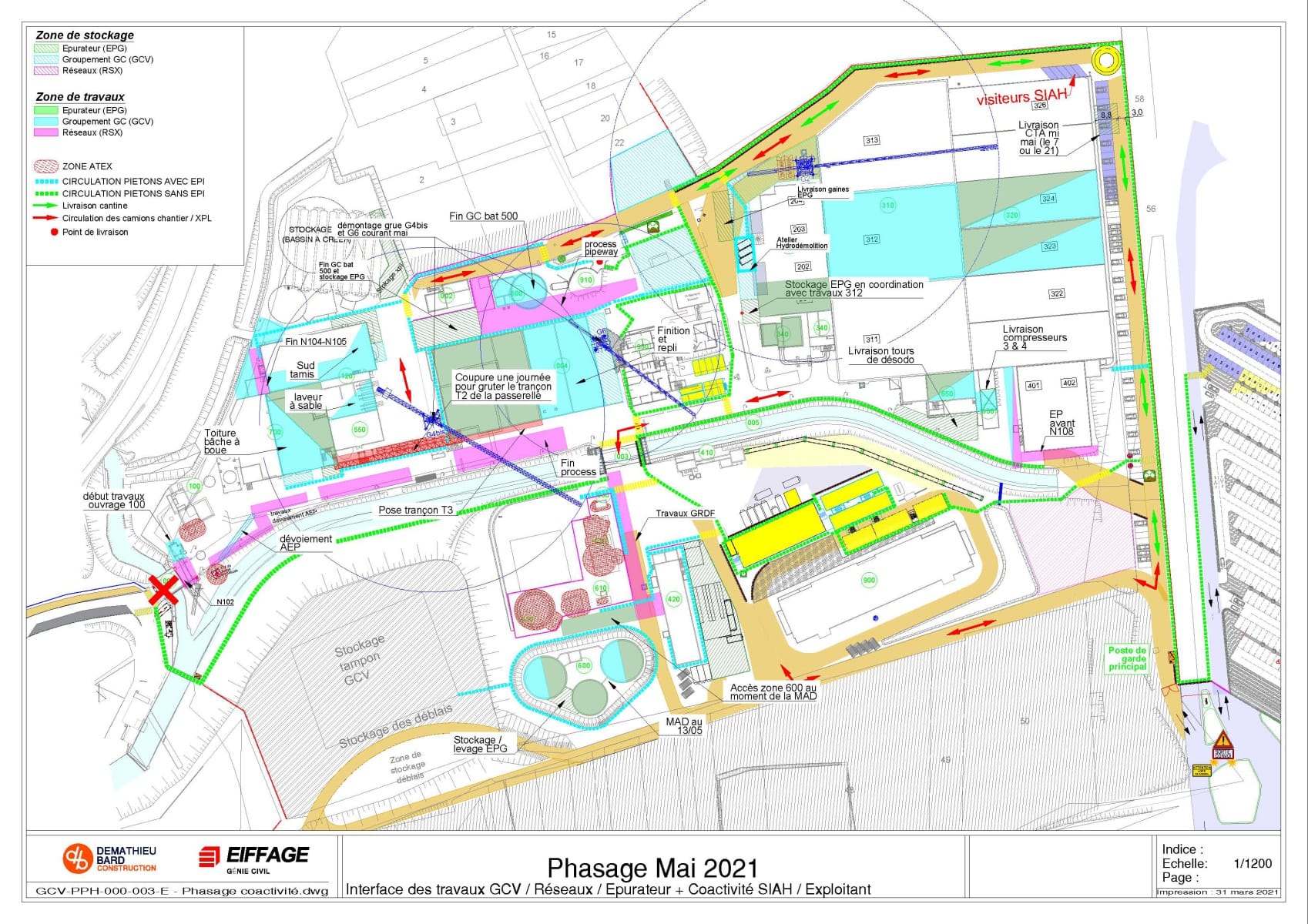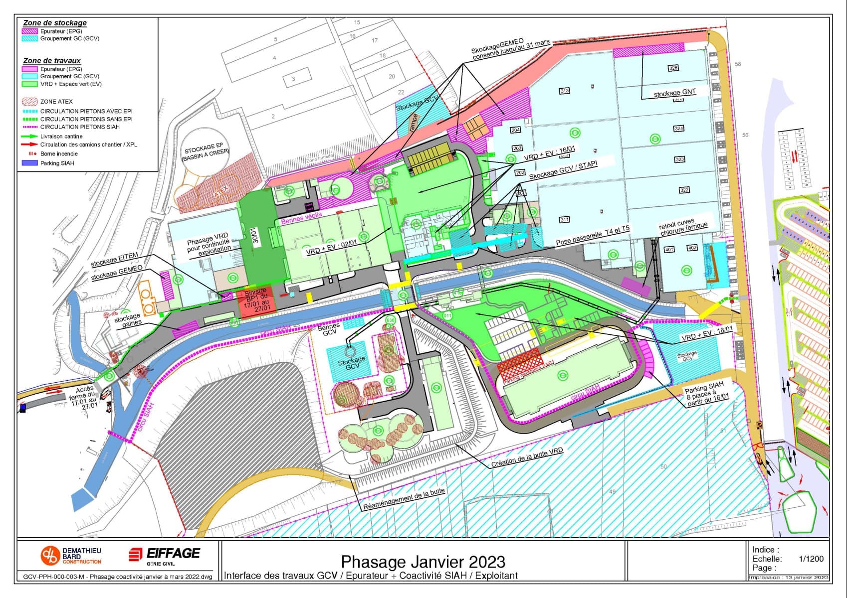 Il définit aussi les différentes circulations pour les véhicules, le cheminement piéton dans les zones de travaux avec EPI et le cheminement dans la station sans EPI.