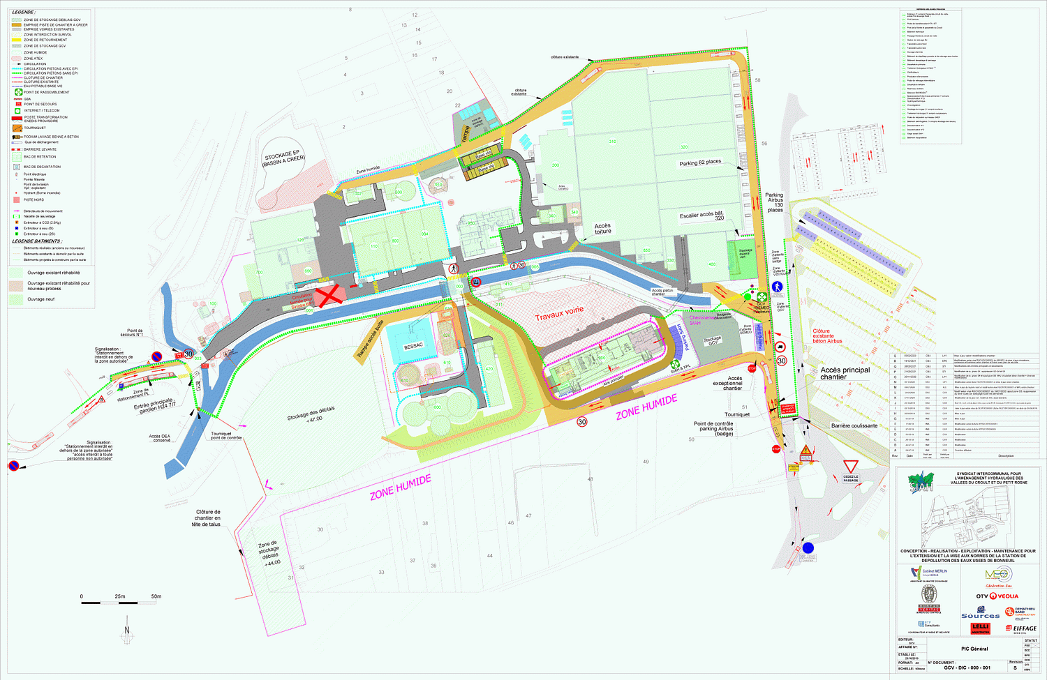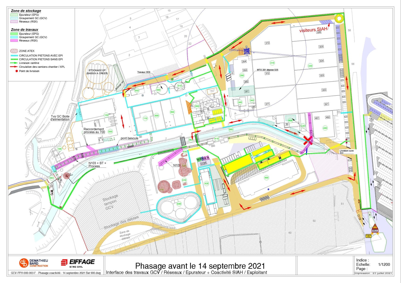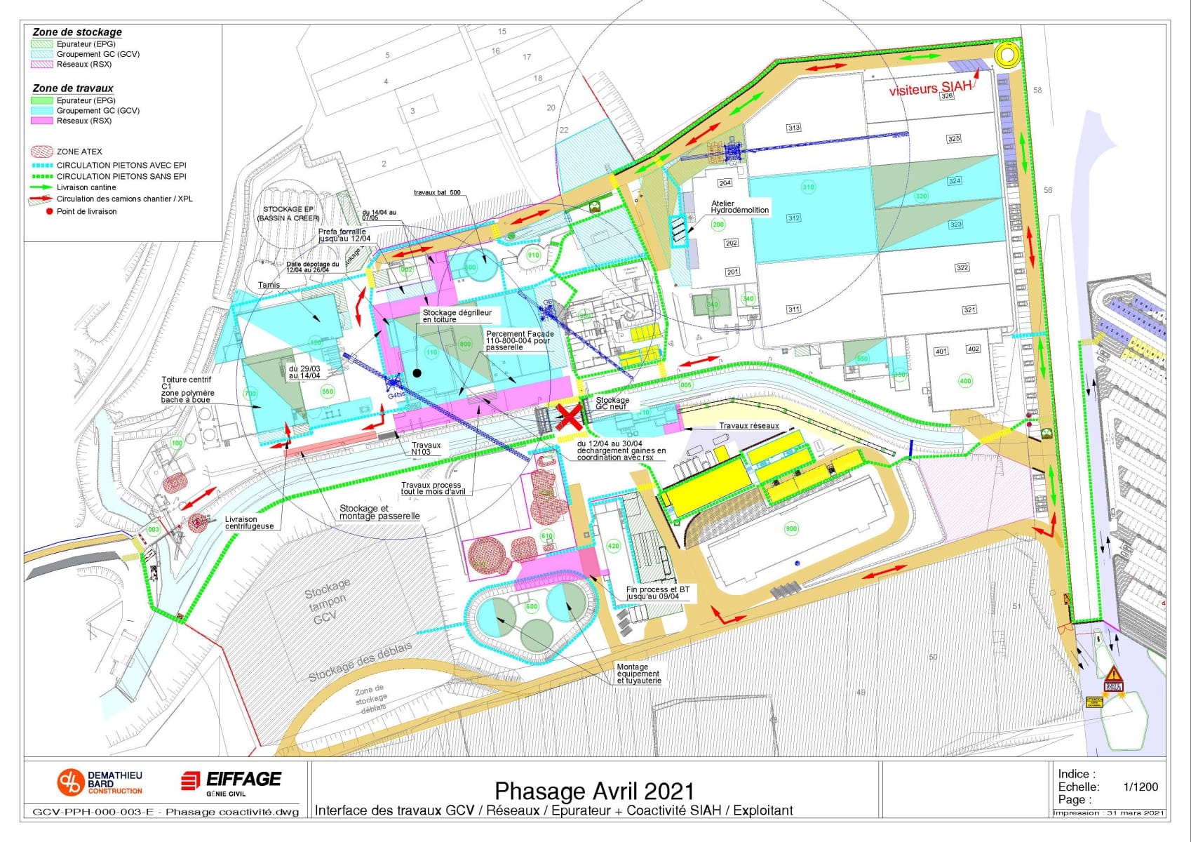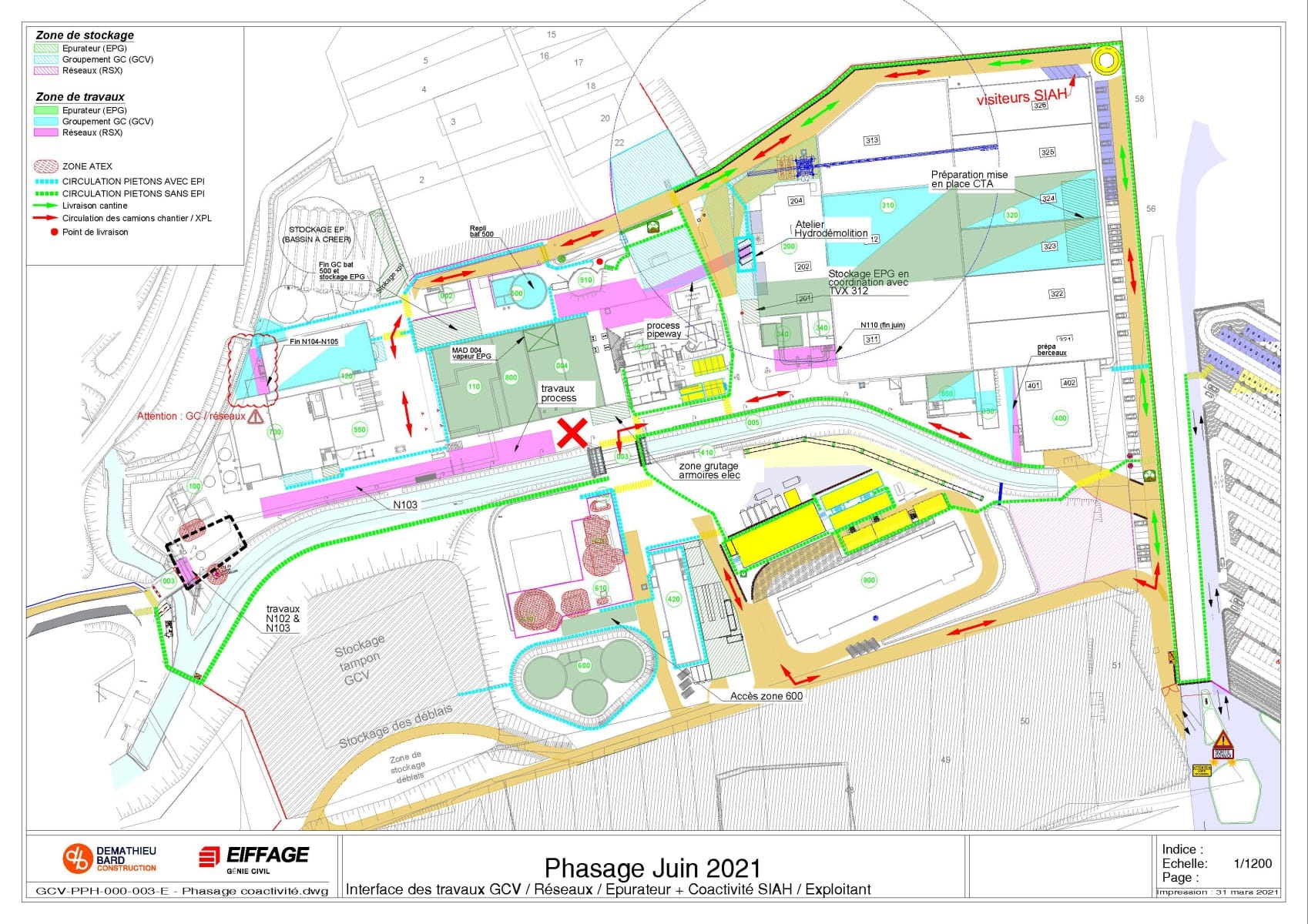 Il définit aussi les différentes circulations pour les véhicules, le cheminement piéton dans les zones de travaux avec EPI et le cheminement dans la station sans EPI.