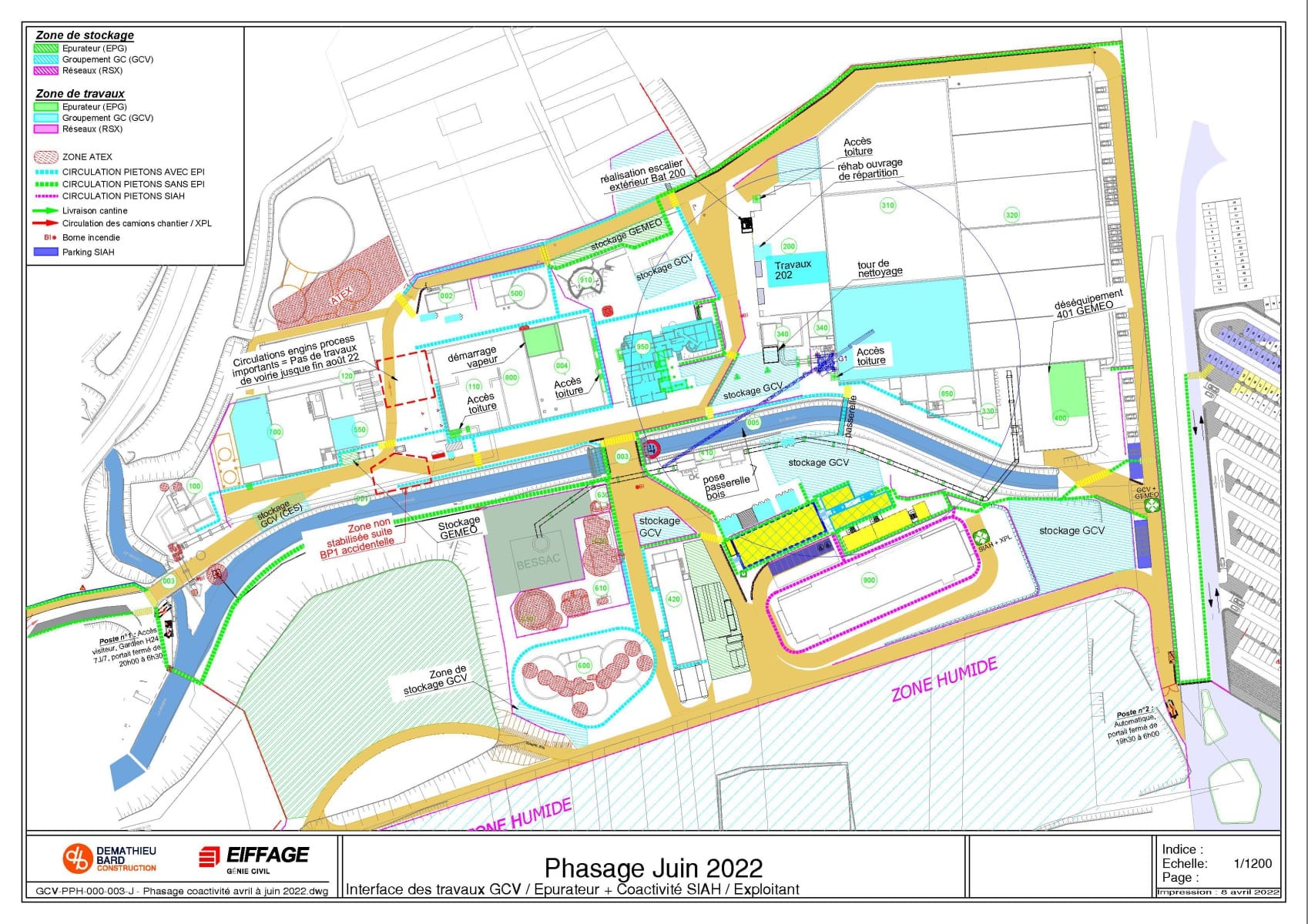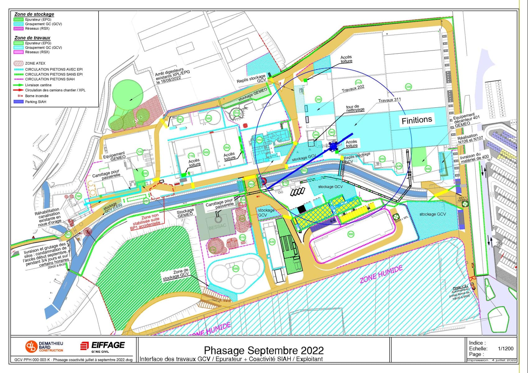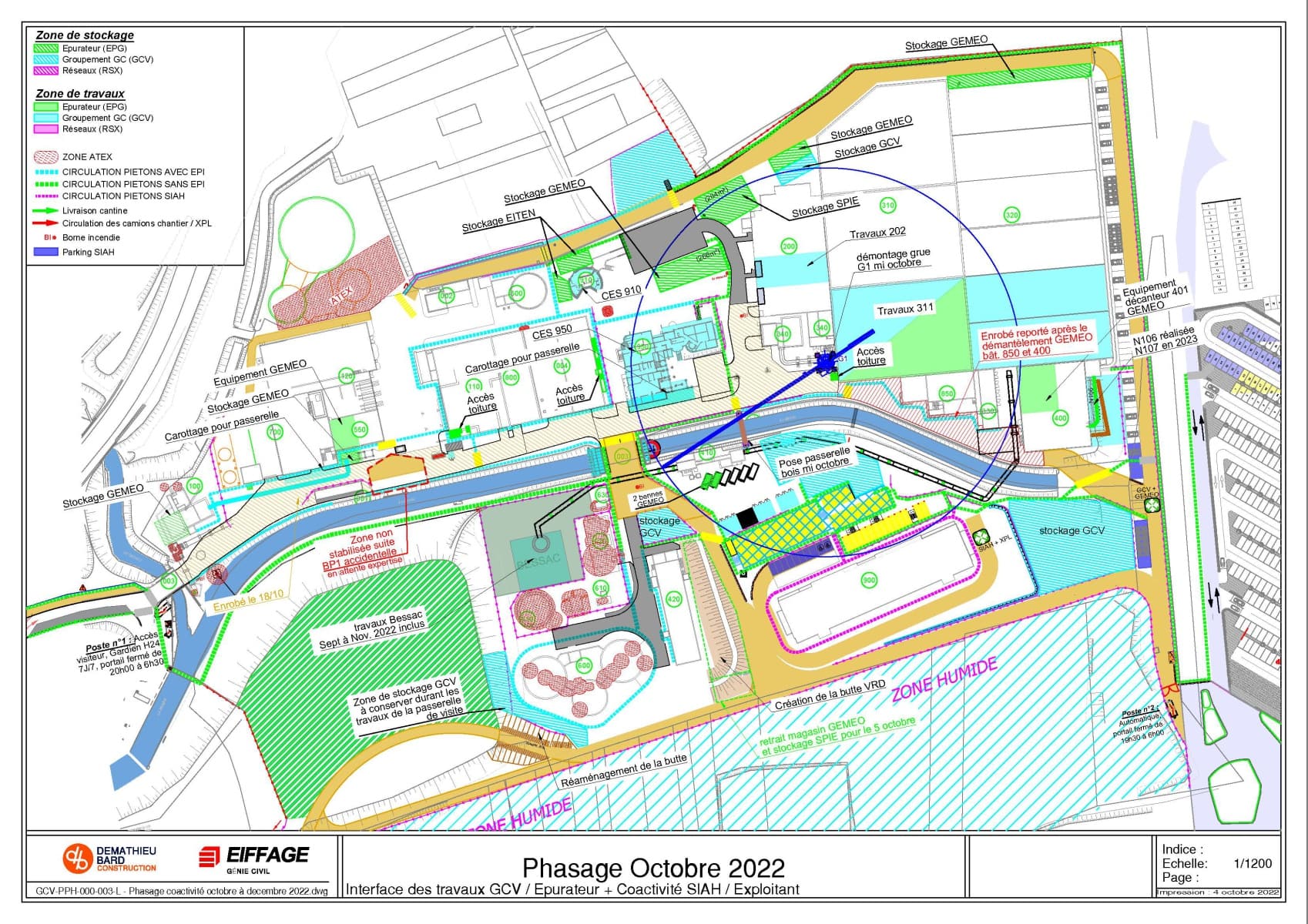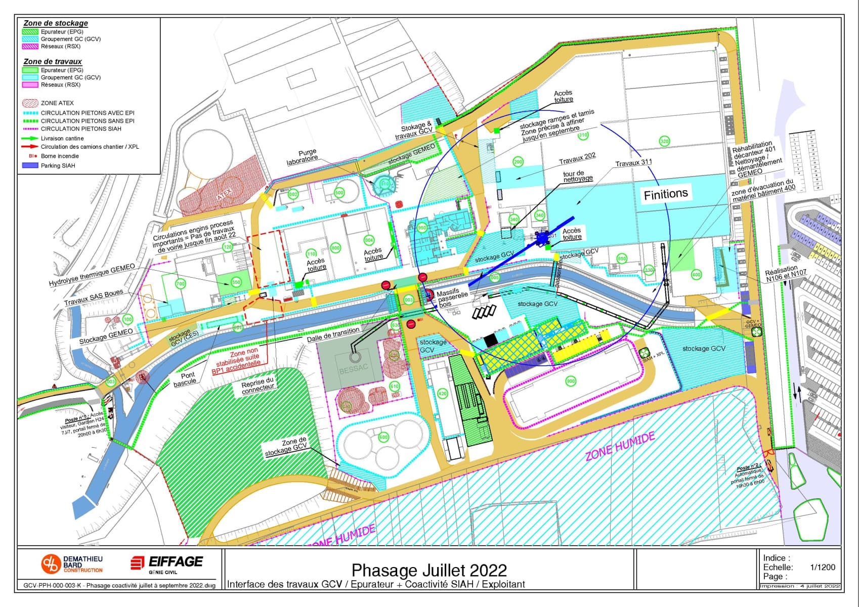 Ce phasage définit les différentes zones de travail et de stockage des intervenants.