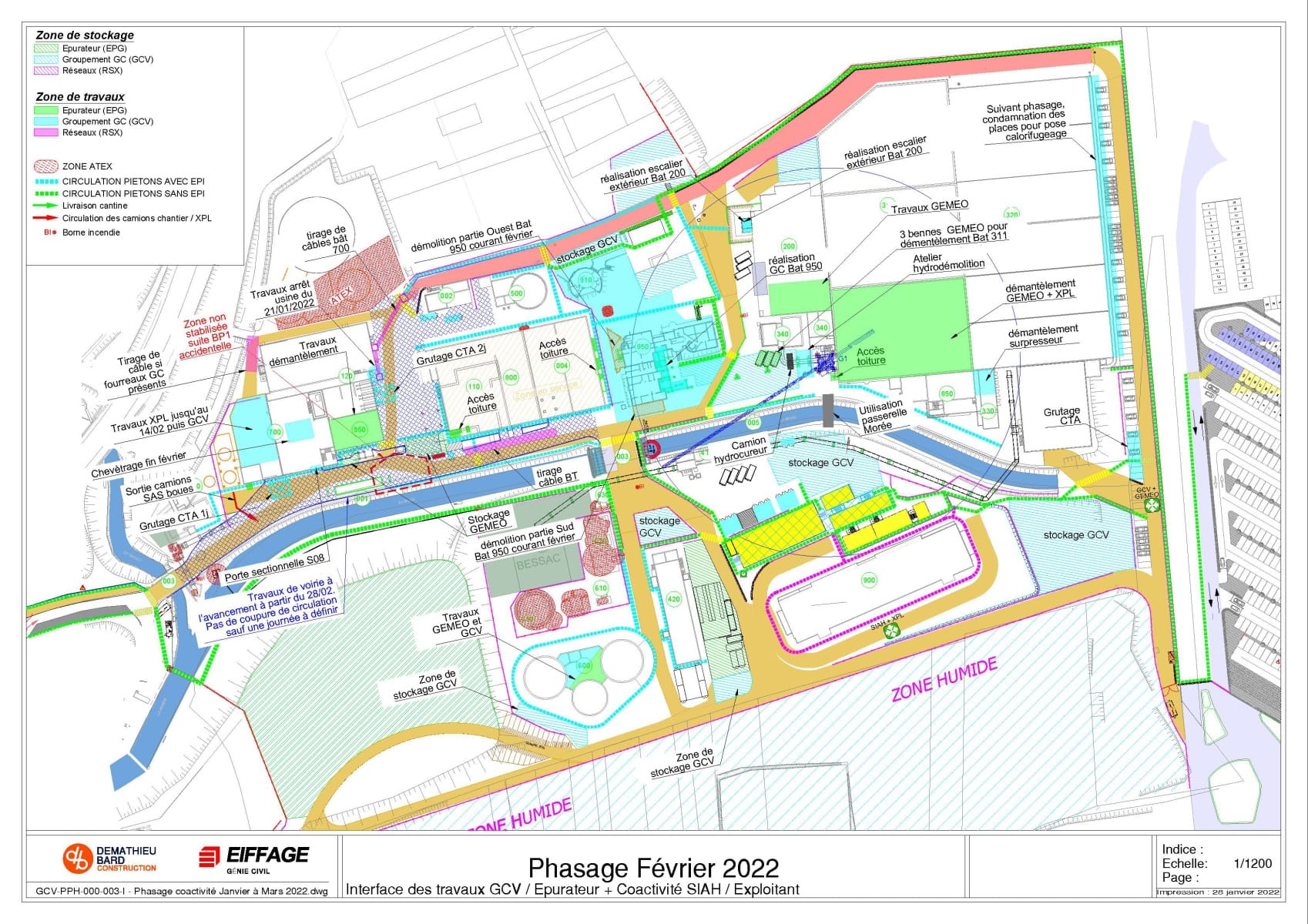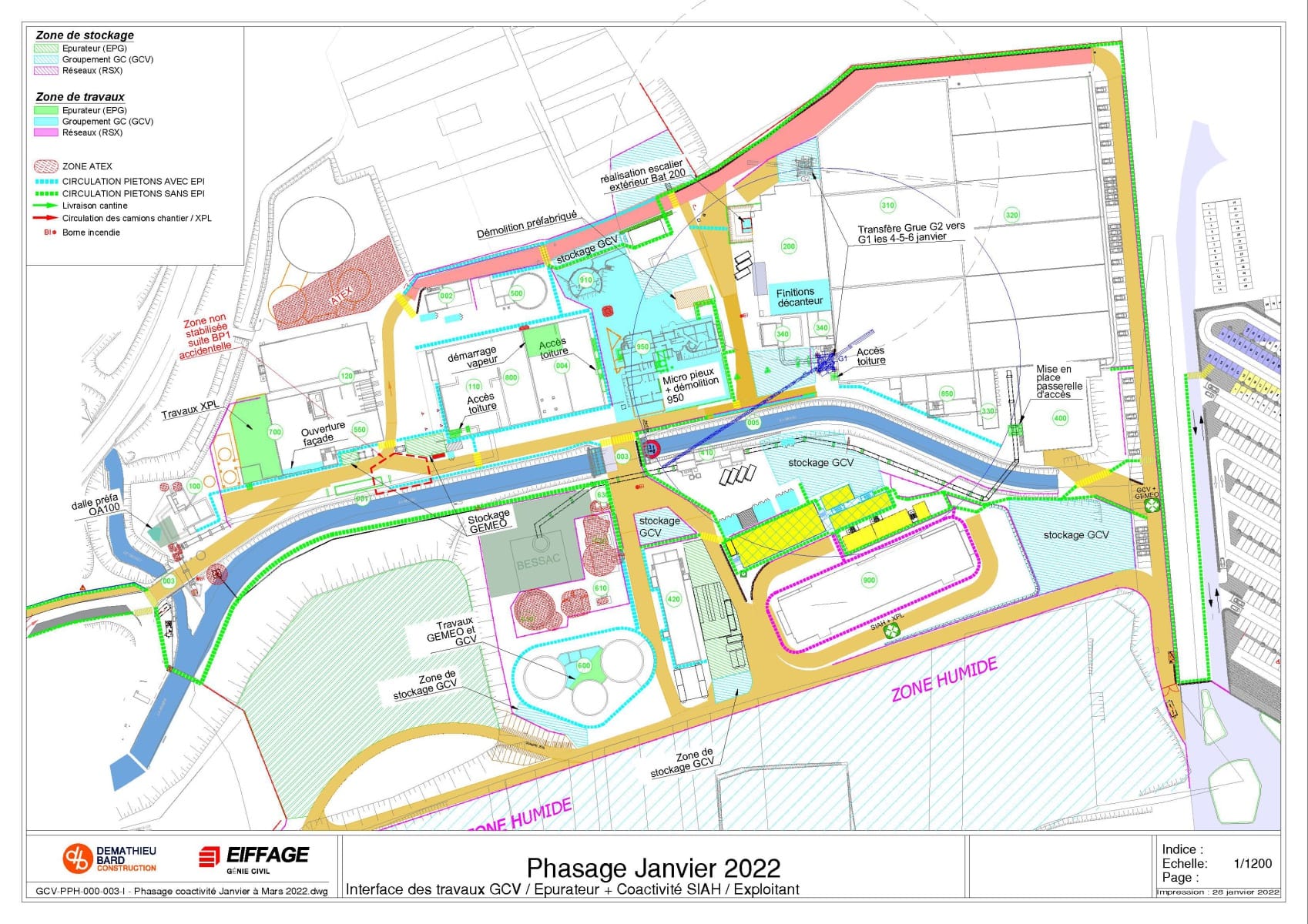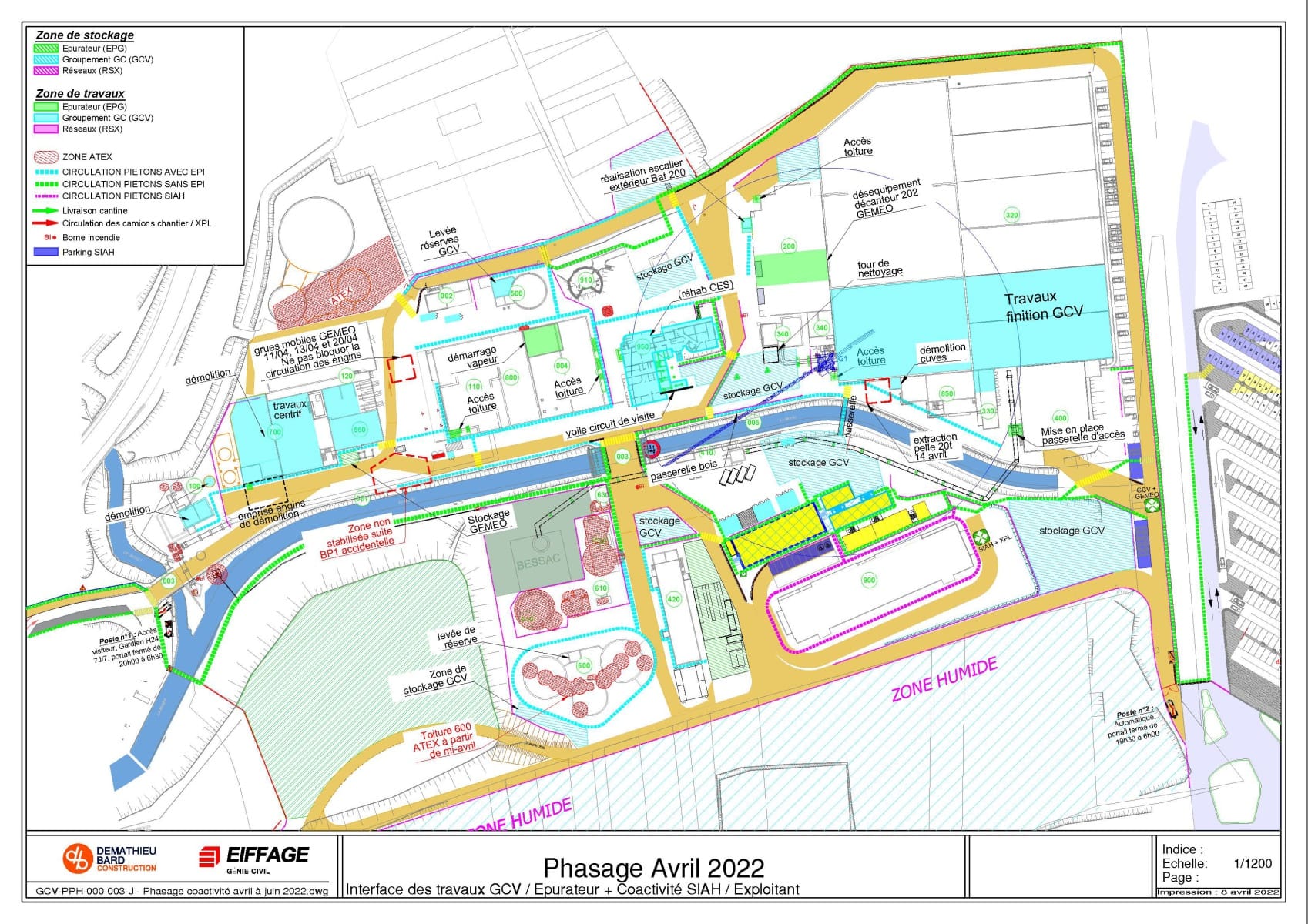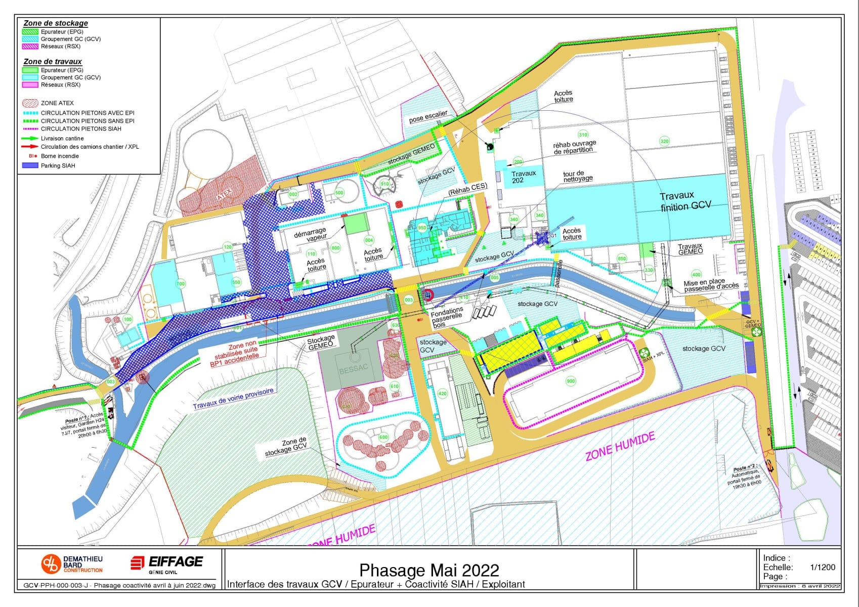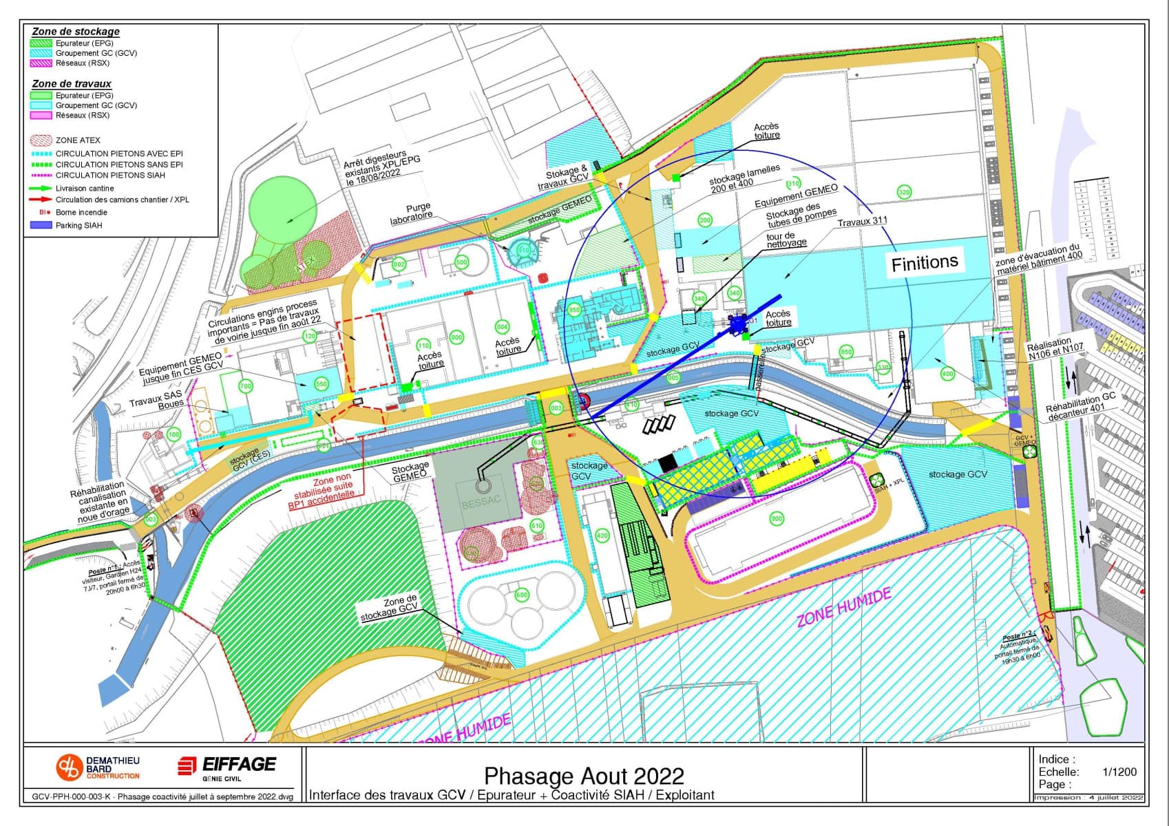 Ce phasage définit les différentes zones de travail et de stockage des intervenants.