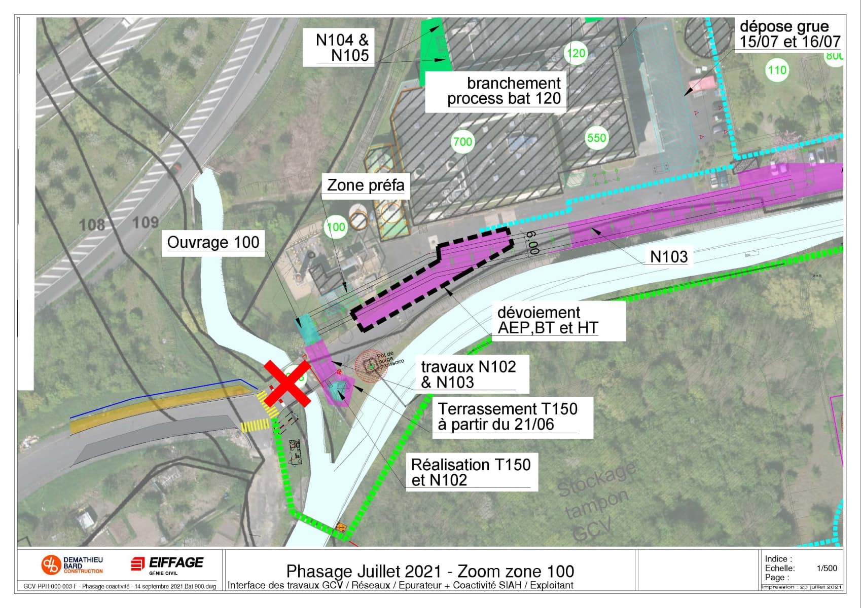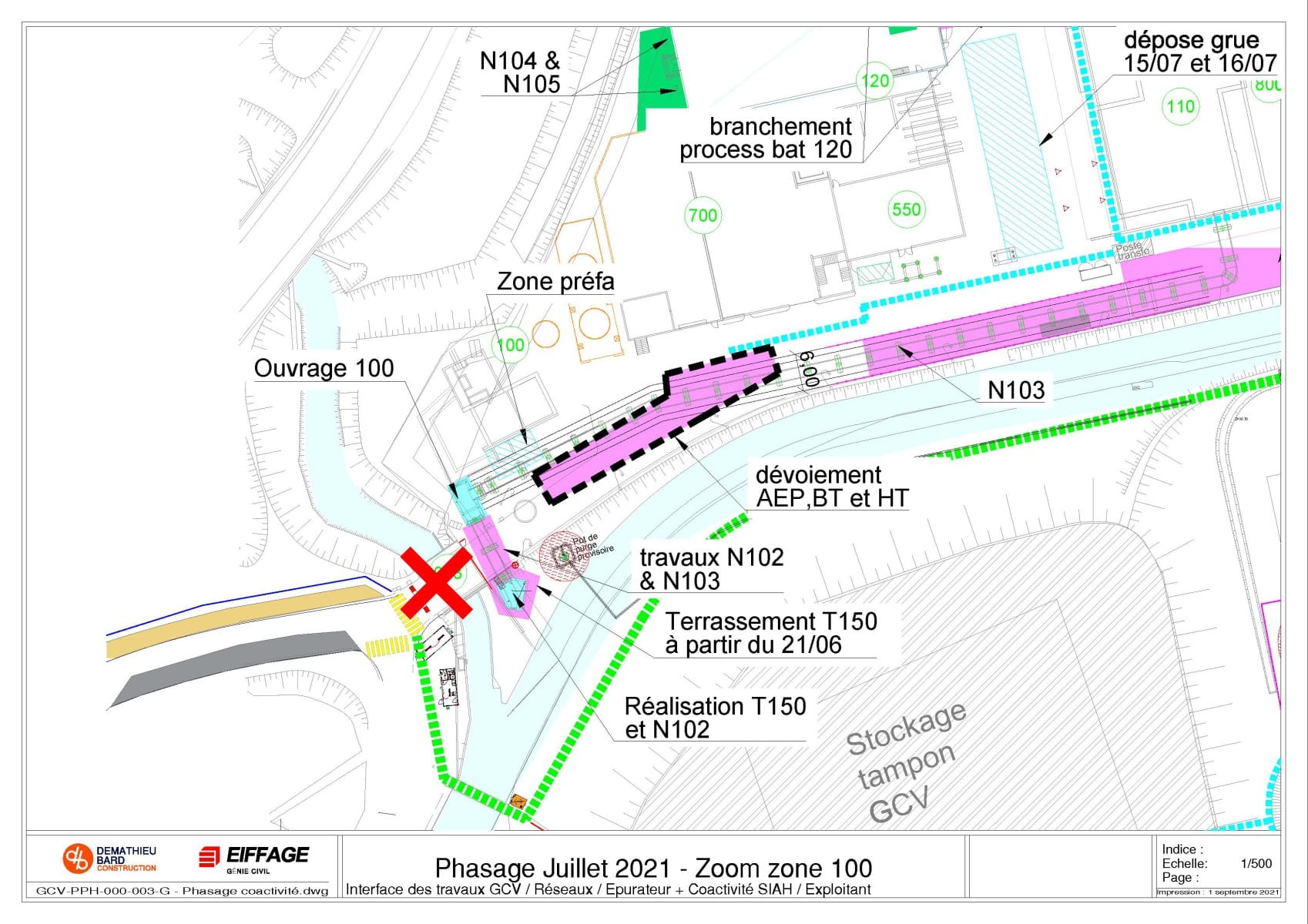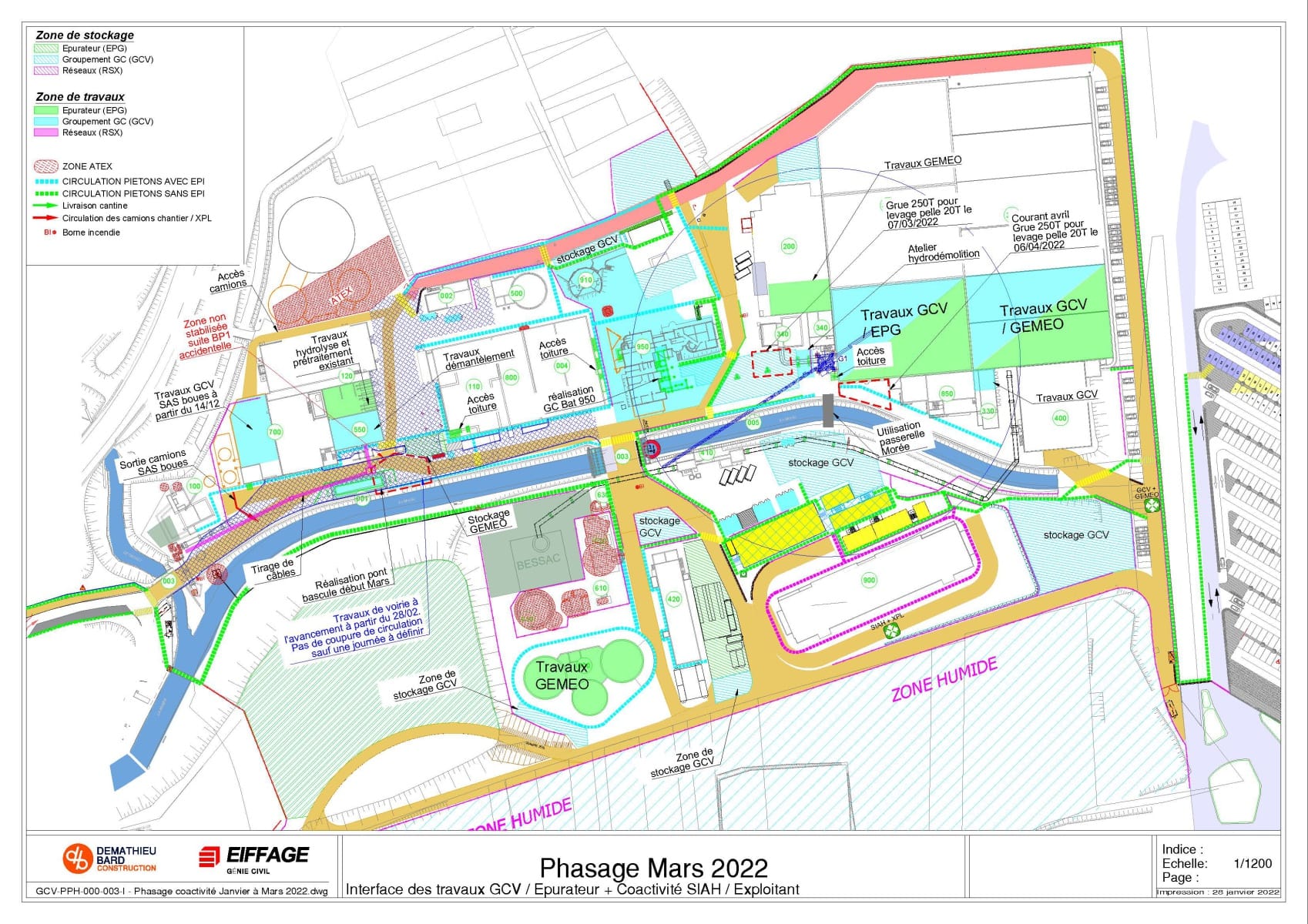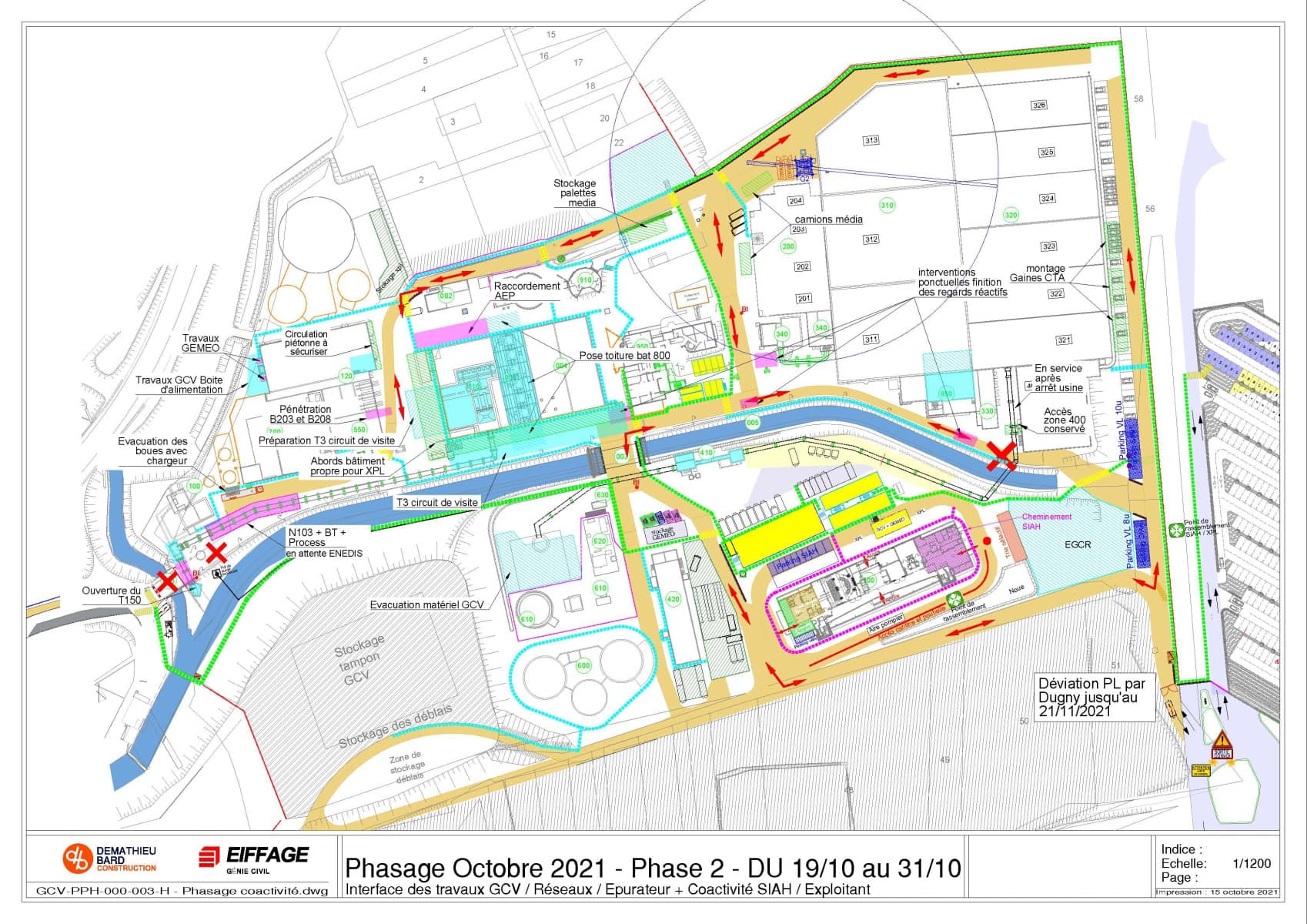 Ce phasage définit les différentes zones de travail et de stockage des intervenants.