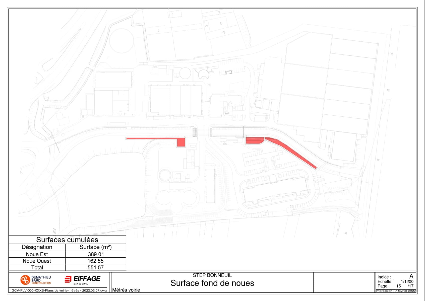 Réalisation d’un plan de surface des différents revêtements du site dans le but de déterminer les dimensions du bassin tampon (pour le stockage des eaux pluviales lors des fortes pluies).